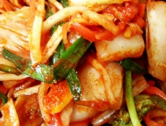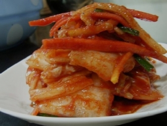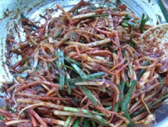 這里來一個(gè)特寫,這就是攪拌好了的辣白菜了,是不是很有食欲呀?;-)